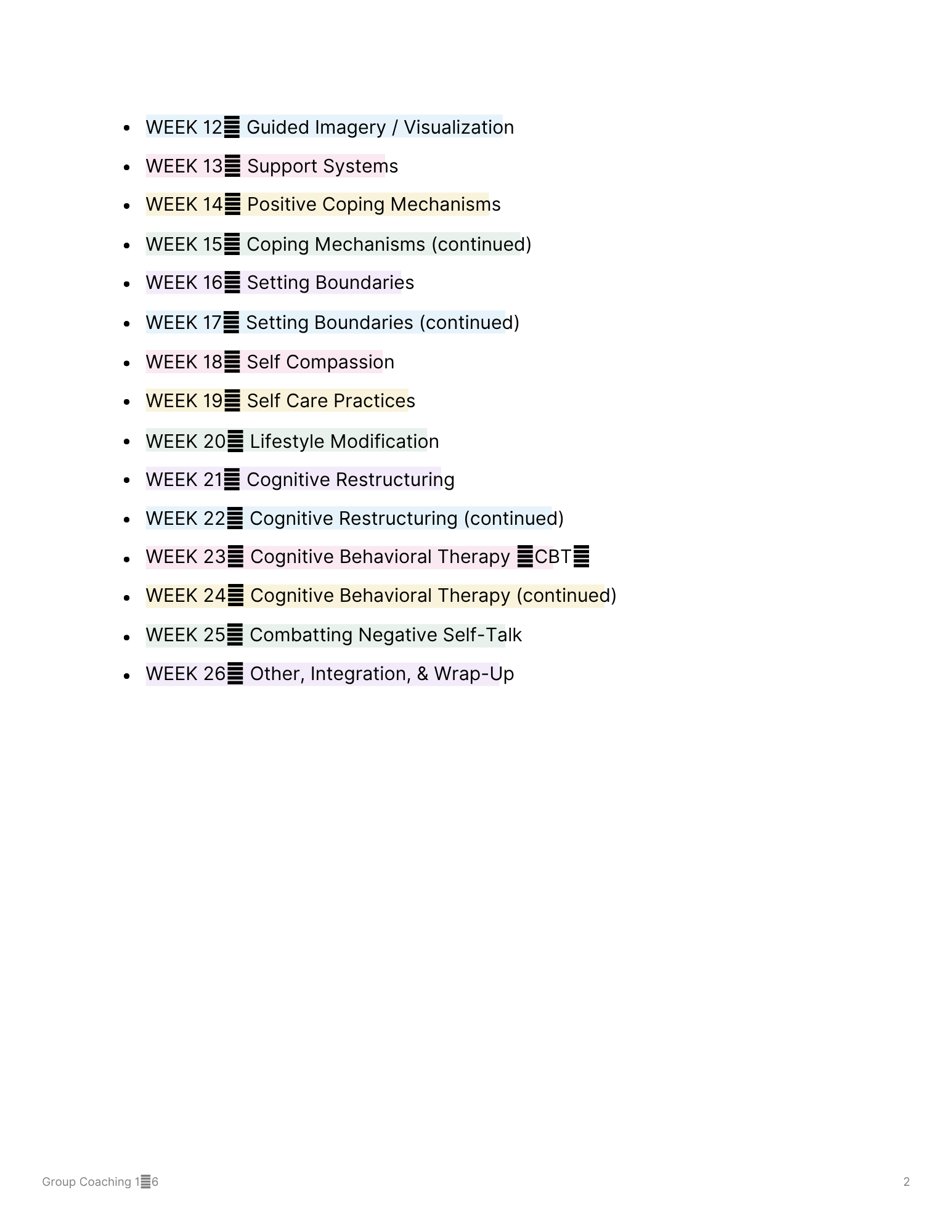 Each weekly session focuses on a key theme — from identifying patterns and triggers to mastering mindfulness, relaxation, and cognitive behavioral techniques. You’ll be guided step-by-step through evidence-based practices, supported by a small, connected group of peers (1 coach : 6 participants) for deeper accountability and growth.