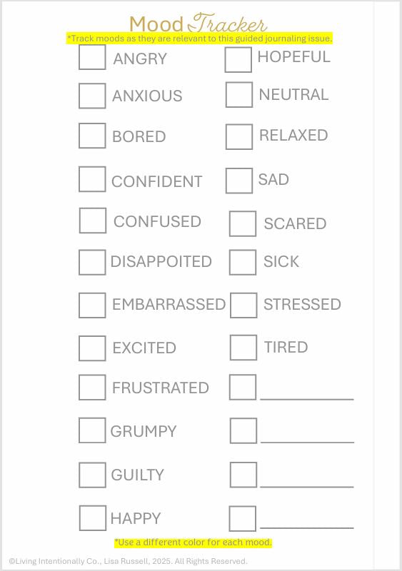 - A physical list of Affirmations (on topic).