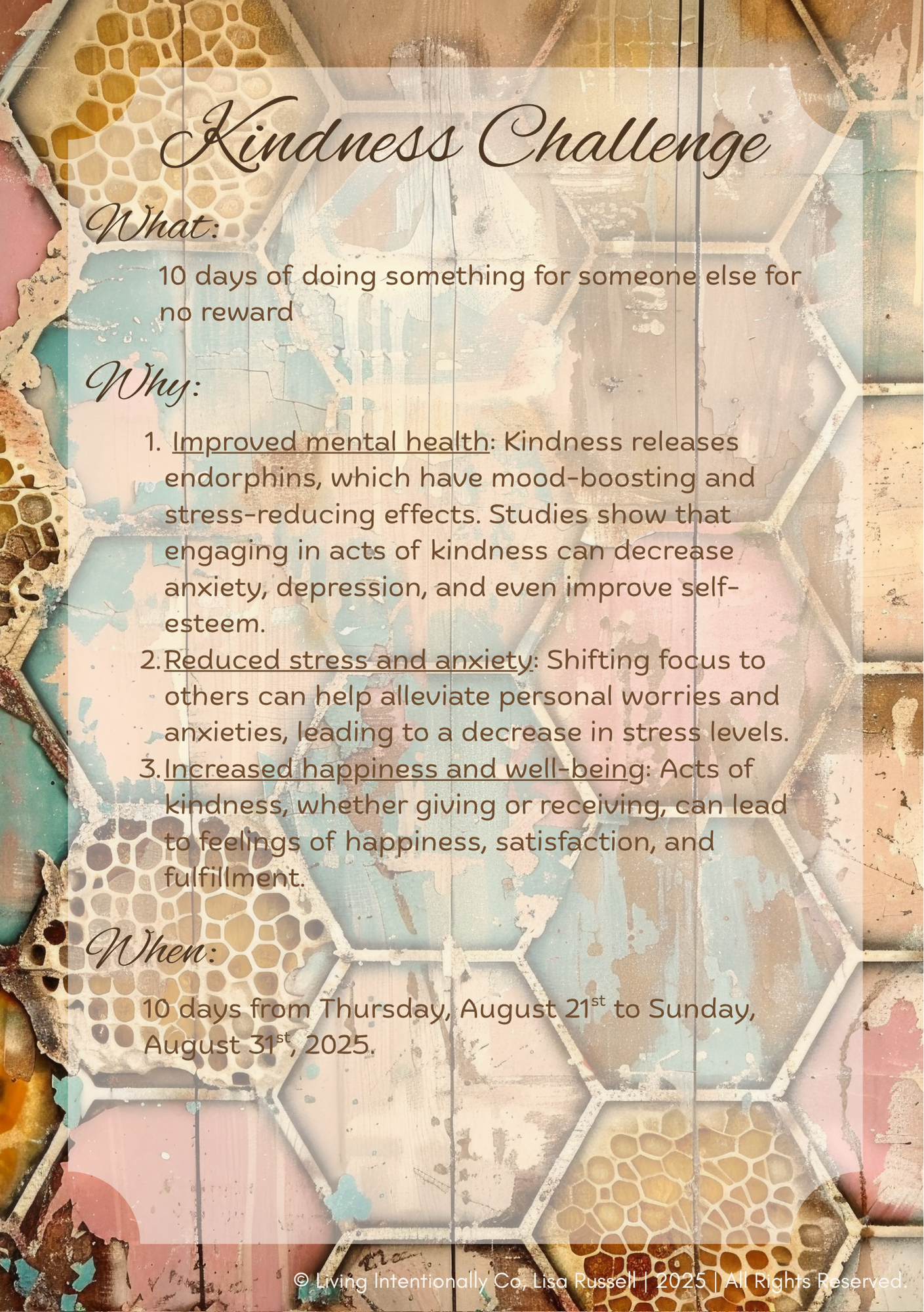• The Kindness Challenge – 10 days of heartwarming acts that spread positivity and gratitude.